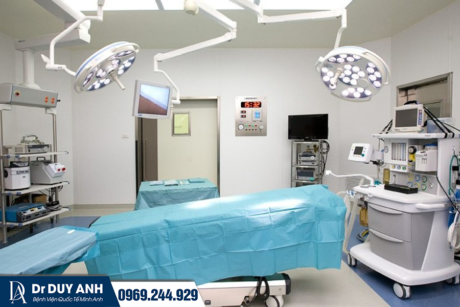 Treo sa trễ không chỉ đòi hỏi tay nghề mà còn cần hệ thống thiết bị hỗ trợ chính xác và an toàn. Tại Dr. Duy Anh – Bệnh viện Quốc Tế Minh Anh, mọi ca phẫu thuật đều được thực hiện trong môi trường đạt chuẩn y khoa với: